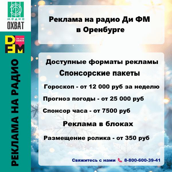 Реклама на радио Ди ФМ в Оренбурге